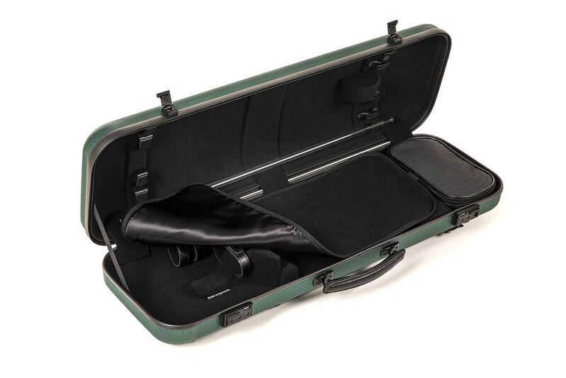 Exterior de material de alta tecnología en malla ópticaForro interior de terciopelo, funda protectoraSoporte de arco de tipo giratorio patentado por GEWA, soporte de arco flexibleSistema de suspensión acolchadoResistencia extrema a la rotura, las mejores propiedades de aislamientoPráctico bolsillo extraíble para accesoriosHerrajes negrosCerradura de combinaciónBolsillo para partituras, extraíble2 correas de mochila de neopreno extraíbles para una gran comodidad de usoNuevo diseño de asa de piel GEWA perforada (cosida a mano)Opcional con asa lateralPeso 2,4 kg sin accesoriosFabricada en Alemania