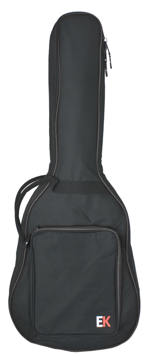 FGB10BK Bajo eléctrico. 10mm de acolchado. Correa regulable con protecciones para mochila. Anclajes de correa metálicos. Asa mejorada para transporte mas comodo. Bolsillo para partituras. Refuerzo exterior en fondo. Logo EK. Caja completa: 10 unidades.