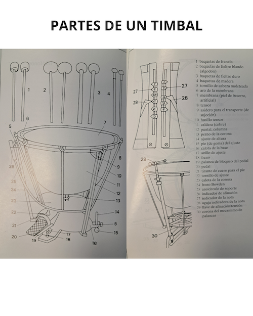 Estas son las partes de un timbal: