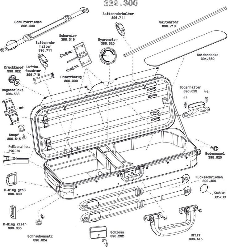 Núcleo térmicoSistema acolchado de suspensiónPeso aprox. 3,6kgFunda atornillada con bolsillo para partituras, resistente al aguaSujección giratoria para arco patentada GEWAPuente para arco flexibleManta protectoraCompartimento para accesoriosDisposición interior regulable entre 36-42,5cmAncho inferior del cuerpo hasta 26,5 cm2 correas desmontables en neopreno tipo mochilaExterior de Tex negroInterior en terciopelo azul
