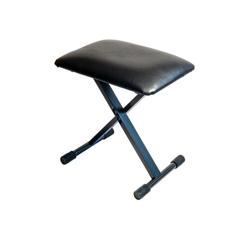 • Banqueta para teclado en X con altura regulable y tapicería imitación piel color negro.