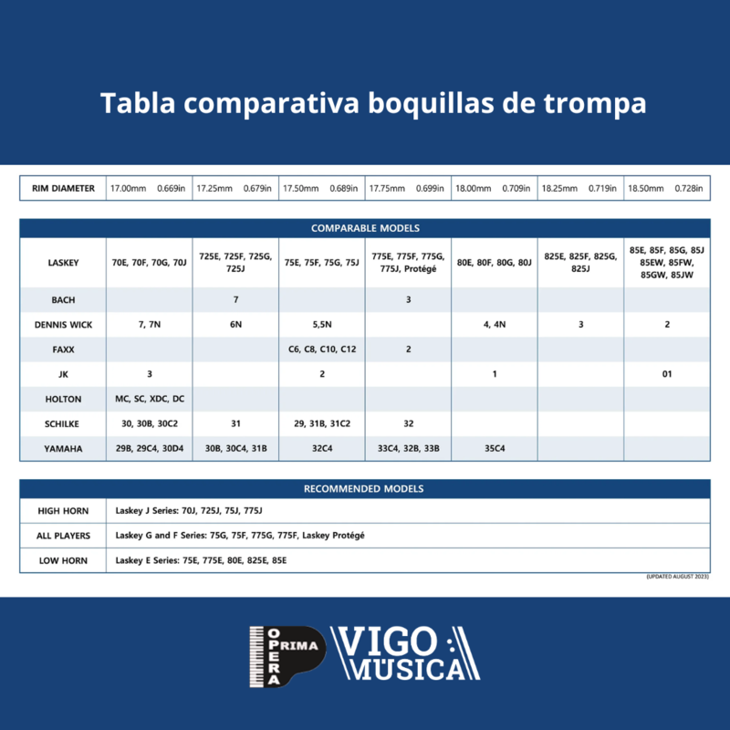 Las boquillas para trompa Laskey ofrecen una gama diversa diseñada para satisfacer las necesidades específicas de los músicos, desde principiantes hasta artistas experimentados.