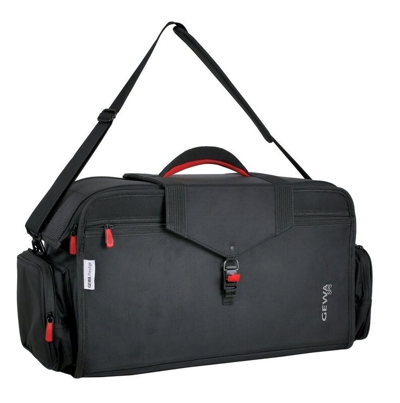 Sistema SPS (R)Cordura de alta calidad 1680 Denier, negroBandolera anchaBolsillo cosido para accesorios/partiturasAsa blandaEl bolsillo para la correa también sirve como bolsillo para partituras3 Trompetas2 bolsillos cosidos para accesorios2 compartimentos para partiturasApta también para 1 trompeta y 1 fliscornoCierre magnéticoSin correas para mochila